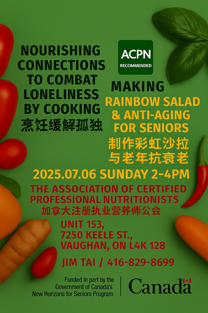 Hosted by the Association of Certified Professional Nutritionists (ACPN) and funded by the Government of Canada’s New Horizons for Seniors Program, this event offers a joyful opportunity to rediscover wellness through color, taste, and community.
