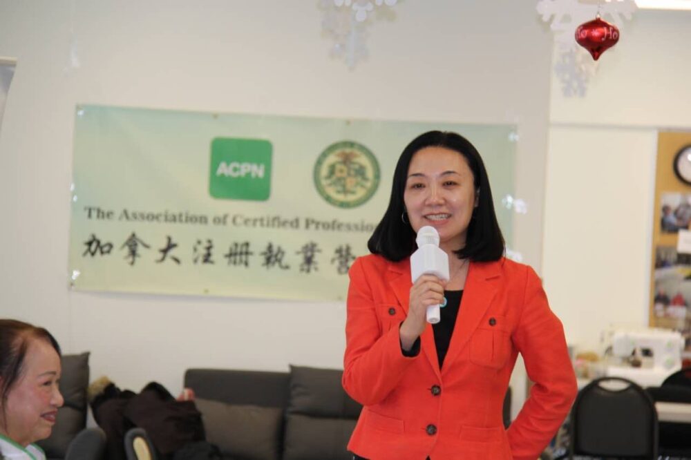 活动开幕式上,加拿大执业营养师公会负责人Maggie Yu女士率先发言。她不仅向长者们致以亲切问候,更结合烧烤食材,分享了冬季健康饮食的小贴士,强调均衡营养与快乐进餐对身心健康的重要性。她表示:“美食是连接情感的纽带,健康的饮食方式能让这份快乐更持久。”