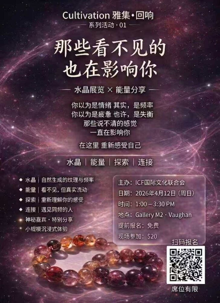 【多伦多讯】2026年3月27日,由国际文化联合会主办的“Cultivation 雅集·回响”系列活动预热交流会在旺市顺利举行。本次活动汇聚文化、艺术及多领域专业人士,通过交流与分享,呈现跨界融合的多元视角,并为即将于4月启动的系列主题活动奠定良好基础。